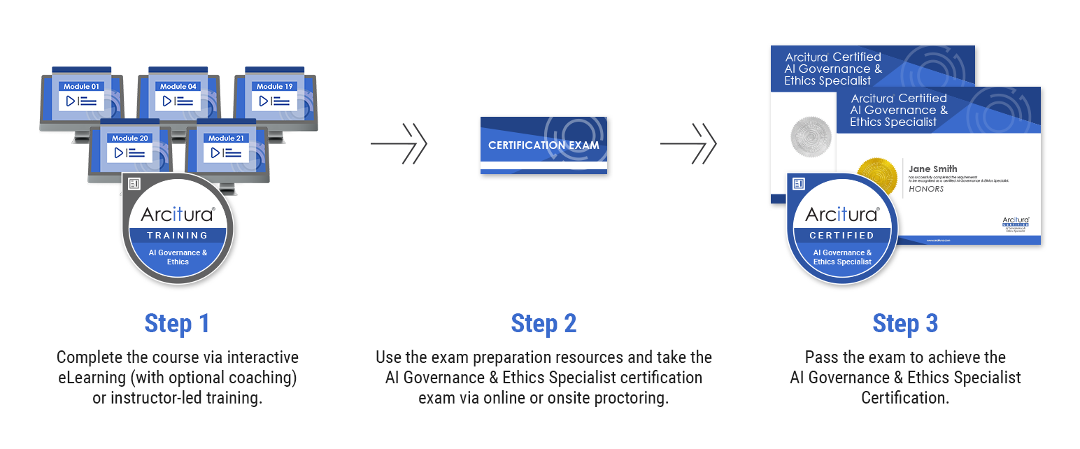 Complete the AI Governance & Ethics course and, optionally, get accredited as a Certified AI Governance & Ethics Specialist by passing the certification exam. You can purchase the course now and get the exam later, or you can get them together at a discount as part of the Certification Bundle.