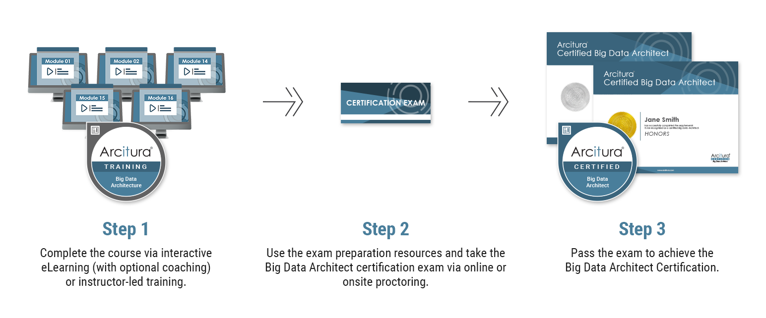 Complete the Big Data Architecture course and, optionally, get accredited as a Certified Big Data Architect by passing the certification exam. You can purchase the course now and get the exam later, or you can get them together at a discount as part of the Certification Bundle.
