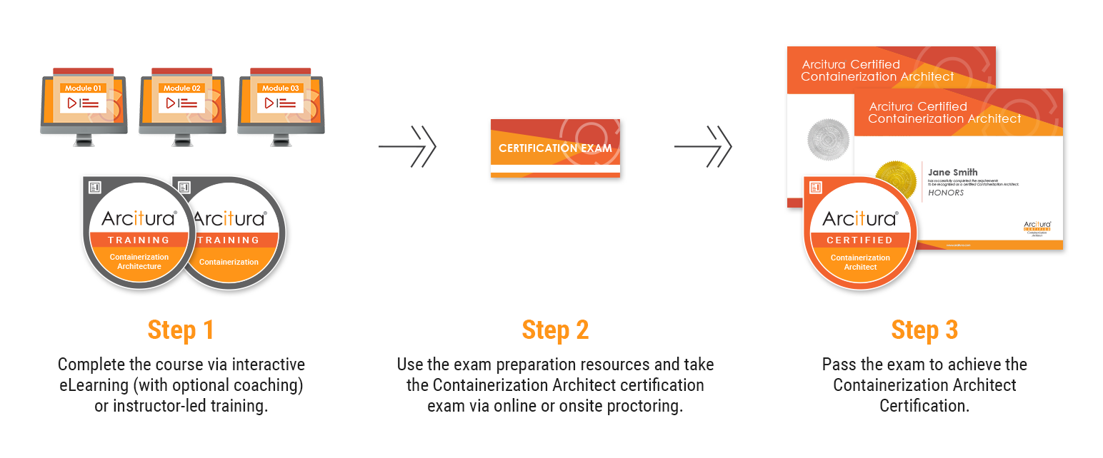 Complete the Containerization Architecture course and, optionally, get accredited as a Certified Containerization Architect by passing the certification exam. You can purchase the course now and get the exam later, or you can get them together at a discount as part of the Certification Bundle.