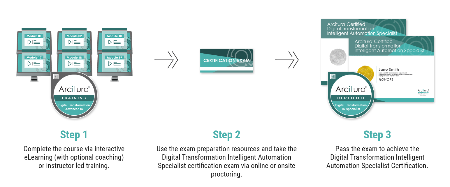 Complete the Digital Transformation: Advanced Intelligent Automation course and, optionally, get accredited as a Certified Digital Transformation Intelligent Automation Specialist by passing the certification exam. You can purchase the course now and get the exam later, or you can get them together at a discount as part of the Certification Bundle.
