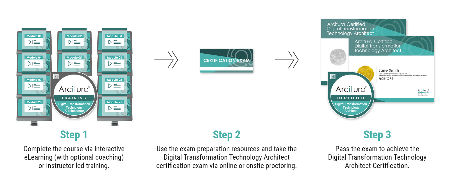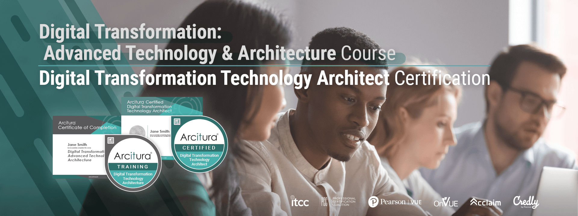 Complete the Digital Transformation: Advanced Technology & Architecture course and, optionally, get accredited as a Certified Digital Transformation Technology Architect by passing the certification exam. You can purchase the course now and get the exam later, or you can get them together at a discount as part of the Certification Bundle.