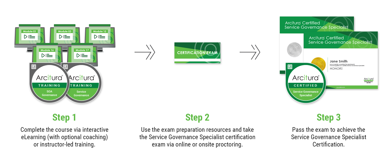 Upon completing the course you will receive a digital certificate of completion, as well as a digital training badge from Acclaim/Credly. Because this course encompasses both the SOA Professional and Service Governance Specialist certifications, upon passing the exam you will also receive official SOA Professional and Service Governance Specialist digital accreditation certificates and certification badges from Acclaim/Credly, along with an account that can be used to verify your certification status.
